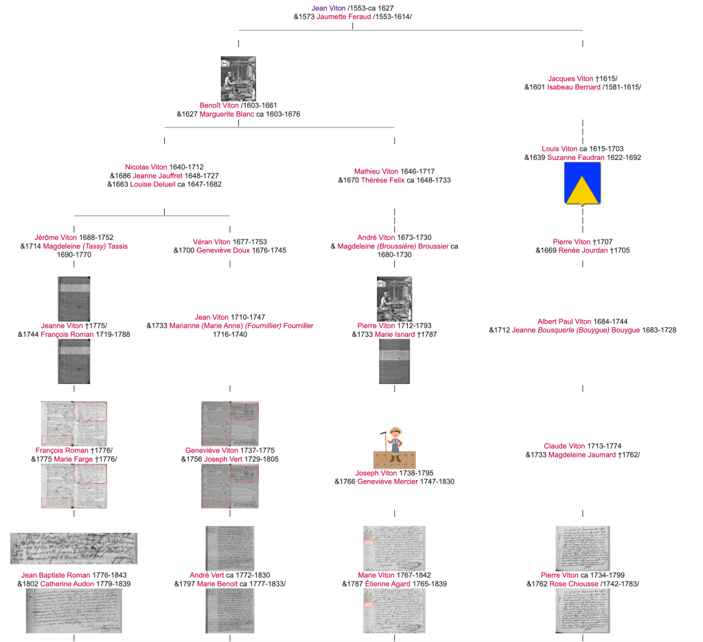 Jérémy’s line is from their son Benoît Viton, and Michel’s line is from their son Jacques Viton.