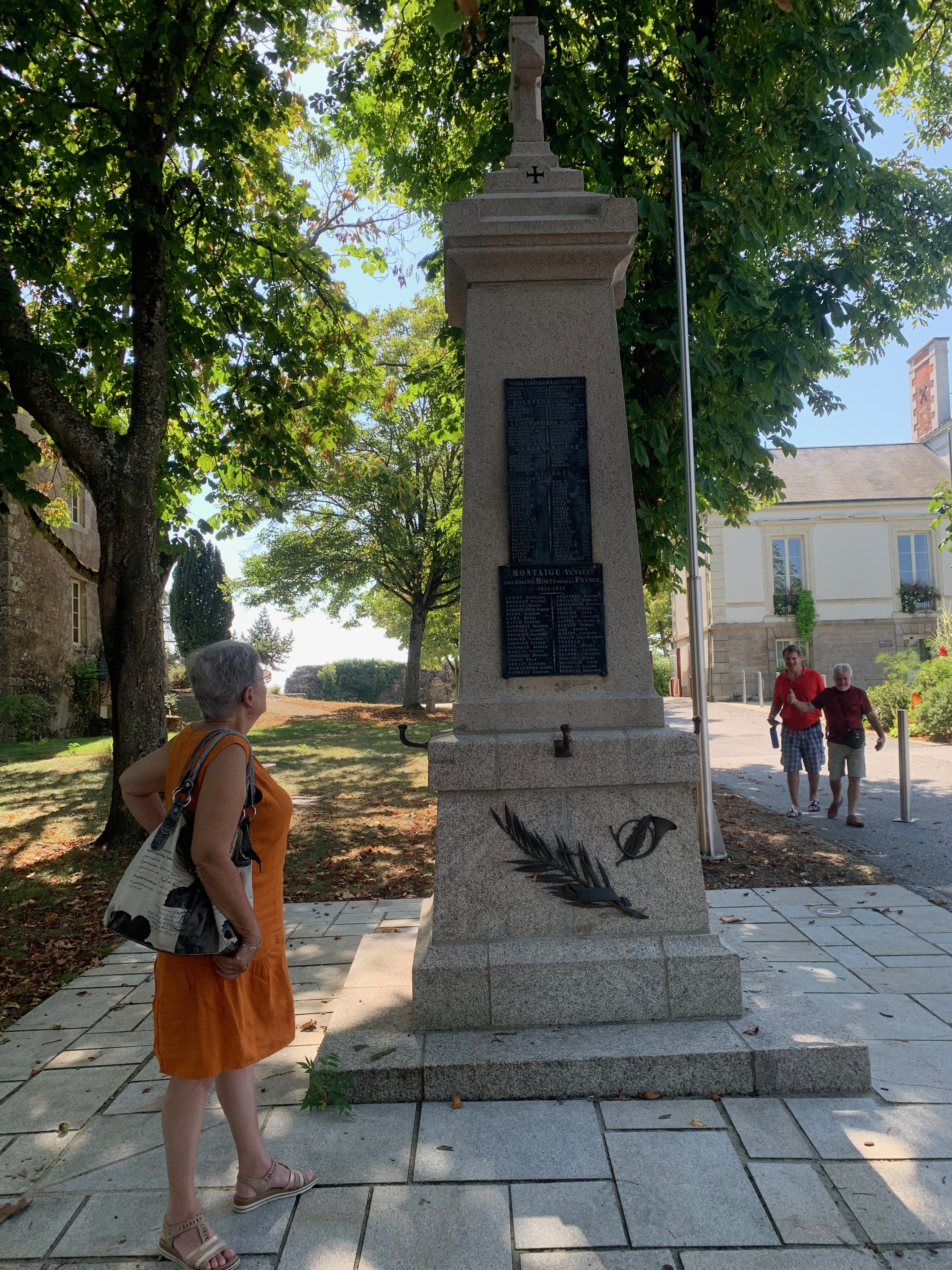 Marie-Laure looking at the names of individuals listed on the Memorial. In the back, David and Paul communicating very well in Frenglish!