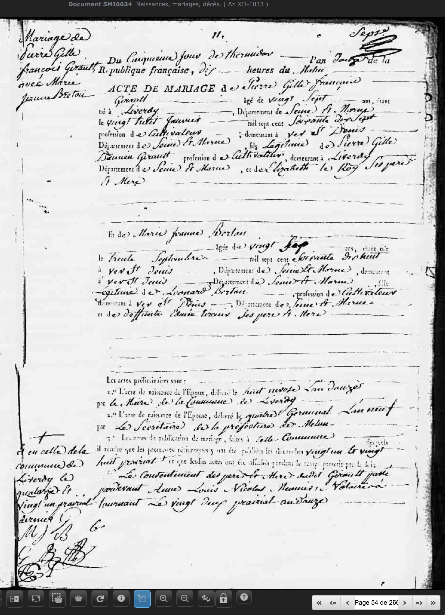 Here is their marriage record: Document 5MI6634 Naissances, mariages, décès. (An XII-1813), vues 54 et 55 of 266