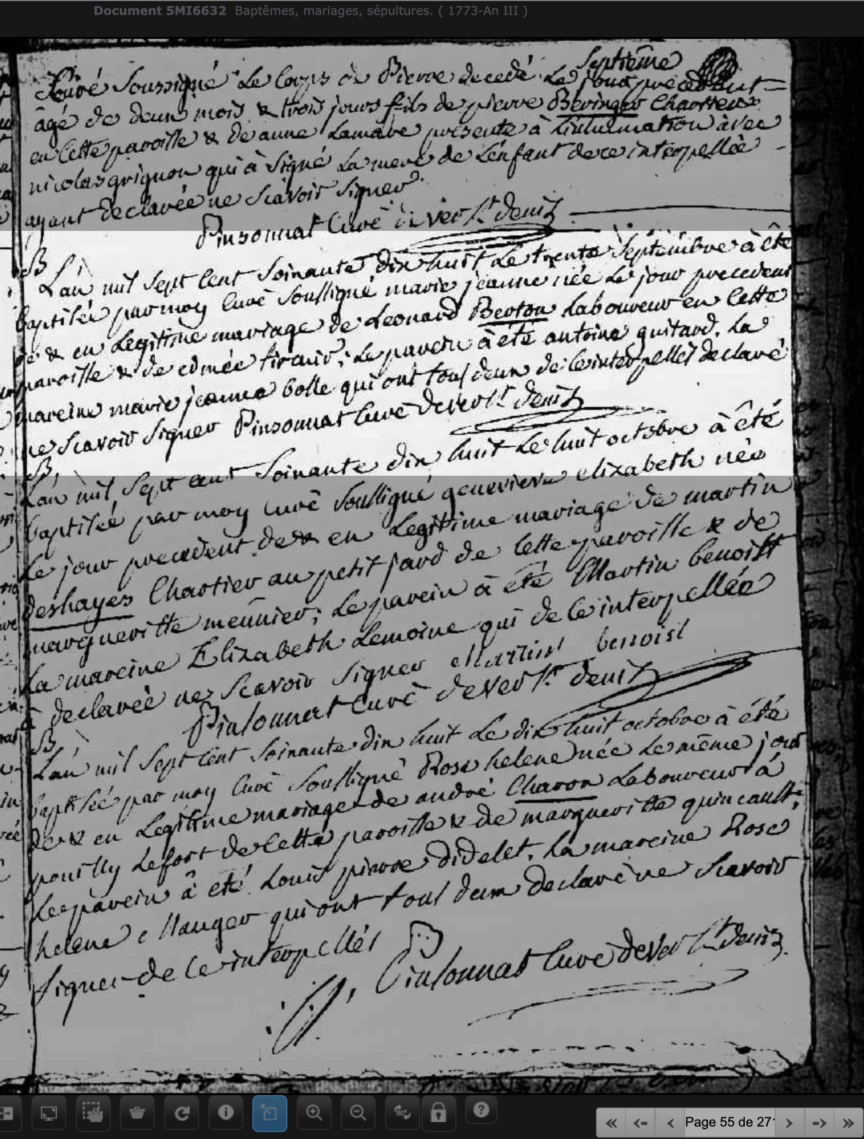 Second annoying thing: just like the Archives of Paris, they do not offer a “permalink” option. This means that if you click on the link I included below, it will take you to the first page of the register. To go to page 54, you will need to either type the view number (54), or use the arrows to navigate to page 54 (see bottom right of my images).