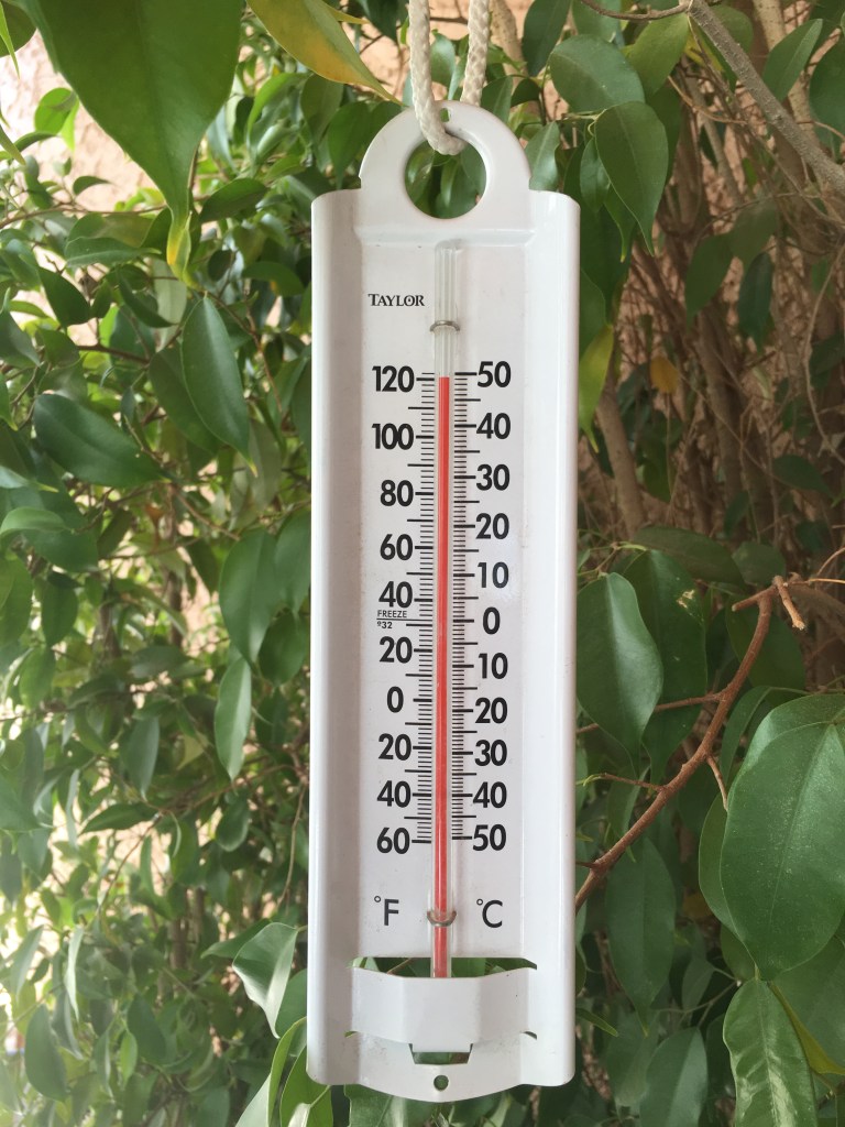 Thermometer: June 19, 2016. On our patio, in the shade, at 3:13pm……. 120ºF… 49ºC… (I stopped taking pictures of the thermometer after that… too depressing!)